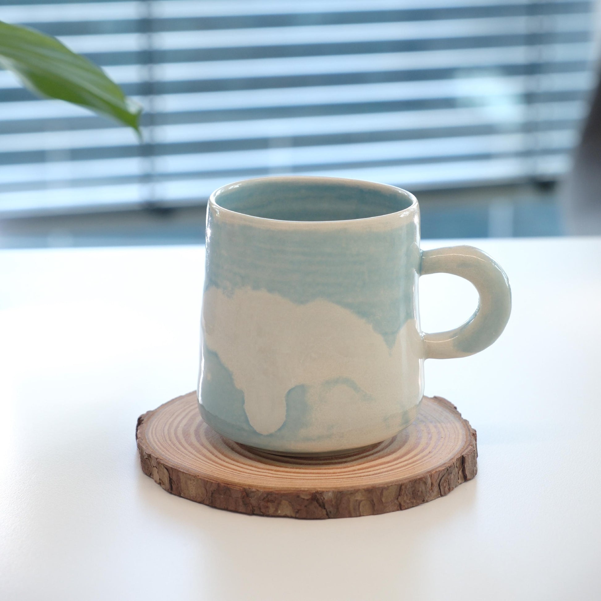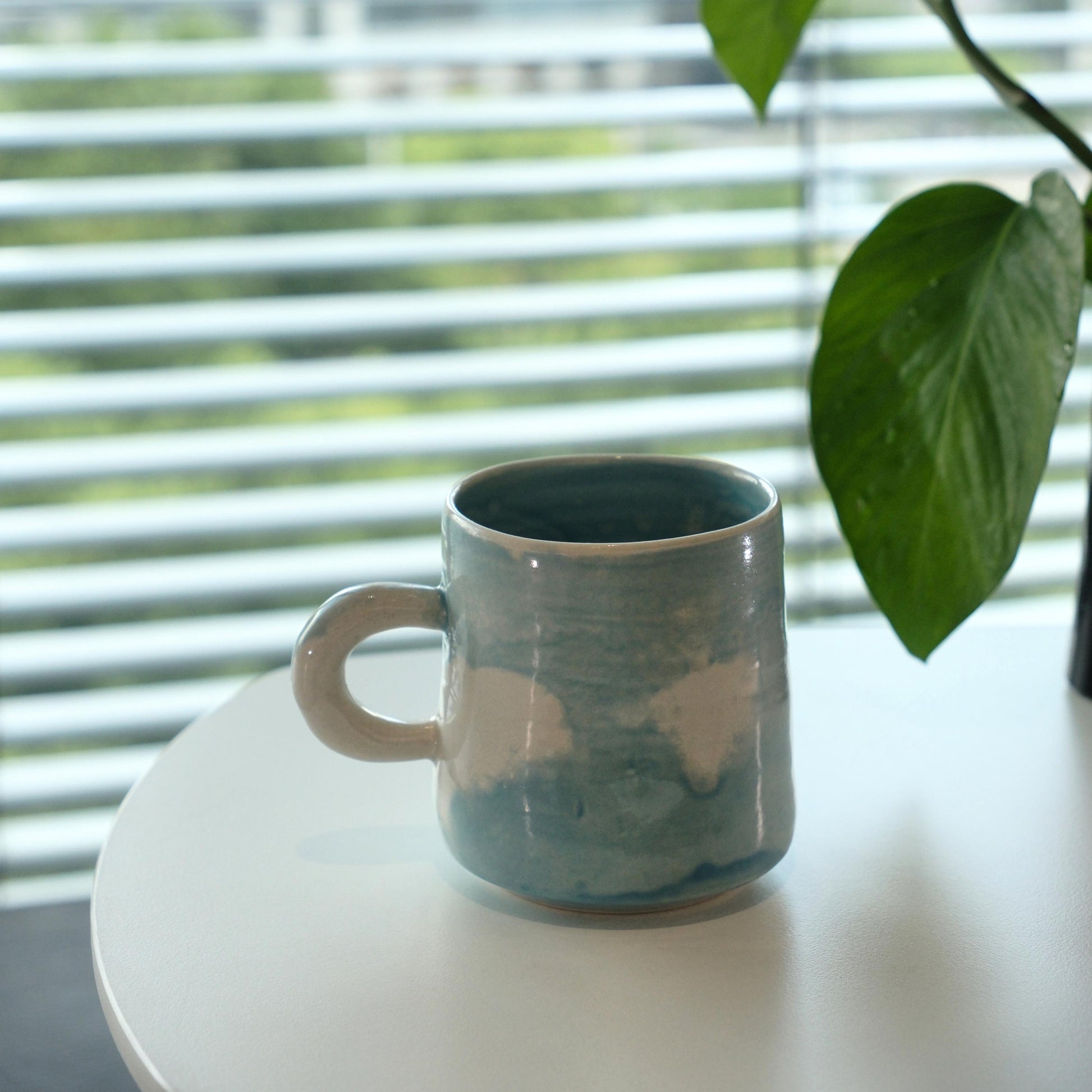 Coffee mug pottery handmade, Sky Blue white teacup, coffee mugs, Unique gift for new dad, Wabi Sabi