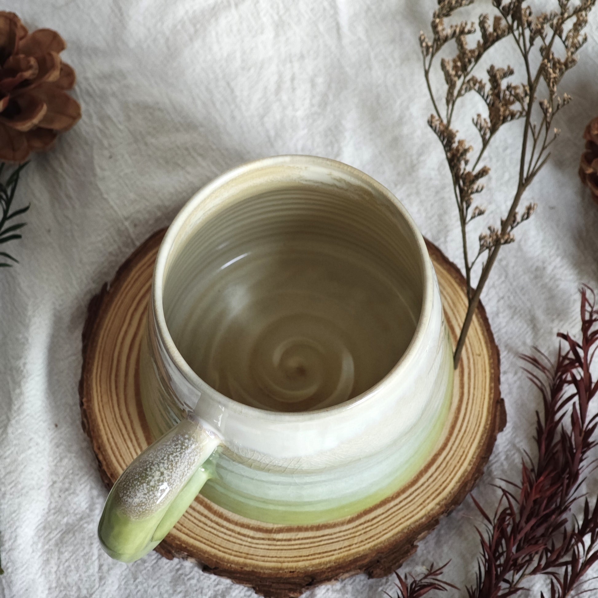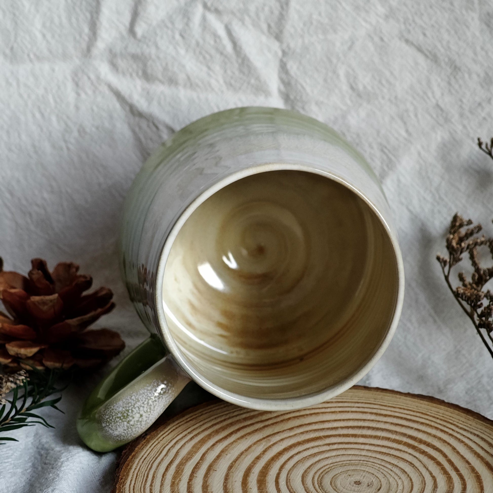 Inspired by Kyoto's Arashiyama Bamboo Grove. The glaze is a vibrant, fresh green, layered like sunlit new bamboo in Arashiyama. Pouring tea into the cup evokes the playful dance of bamboo shadows, creating a refreshing and ethereal style.