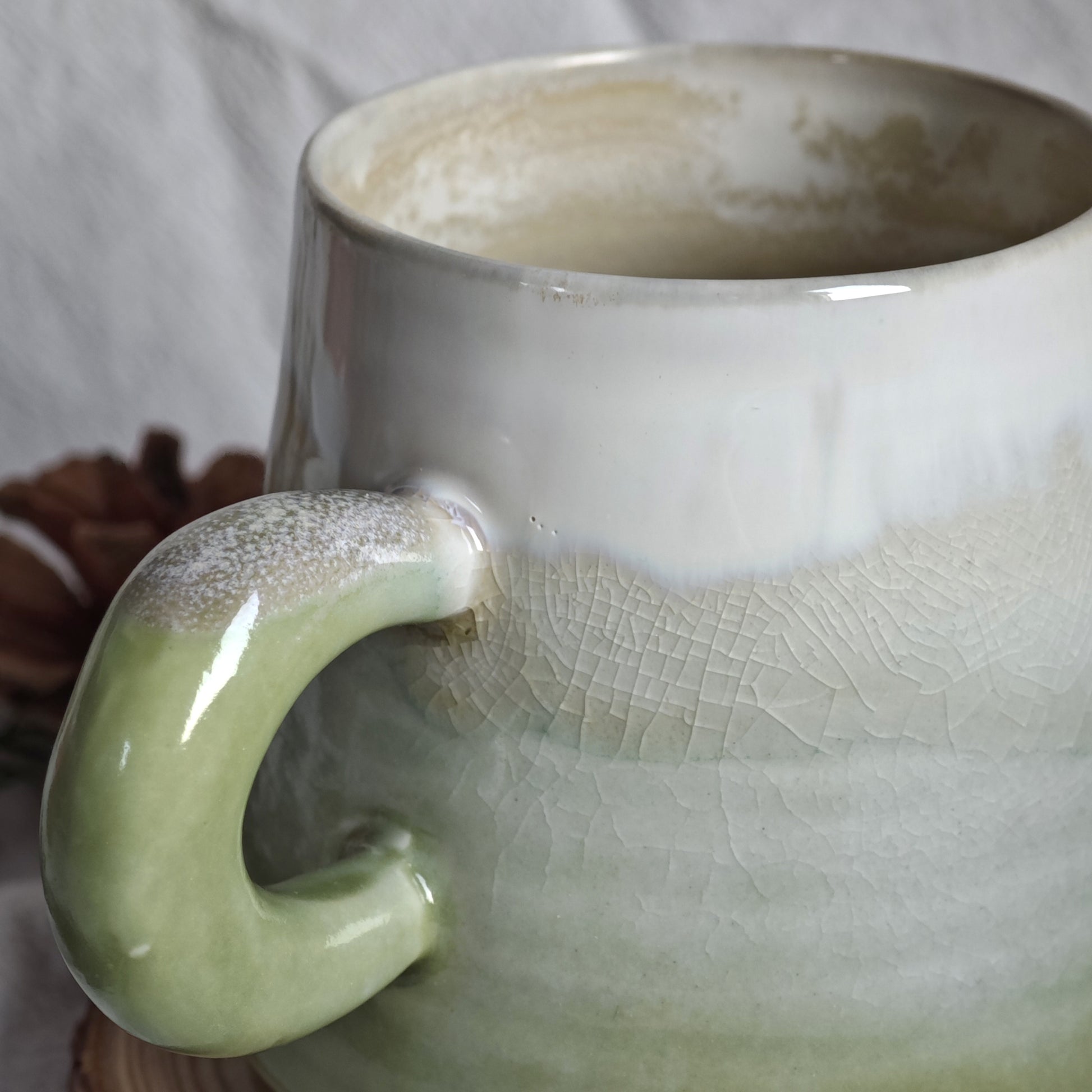The porecelain mugs are made with hand-thrown clay and fired with high-temperature kiln firing, where glazes flow, crystallize, and transform, creating unique and dynamic glaze surfaces. Unlike average cups this cup is sturdy and every single are in unique in glaze formation. If you choose to personalize, we will write the message with Chinese ink brush in Chinese calligraphy style and fire it to keep your message eternal.