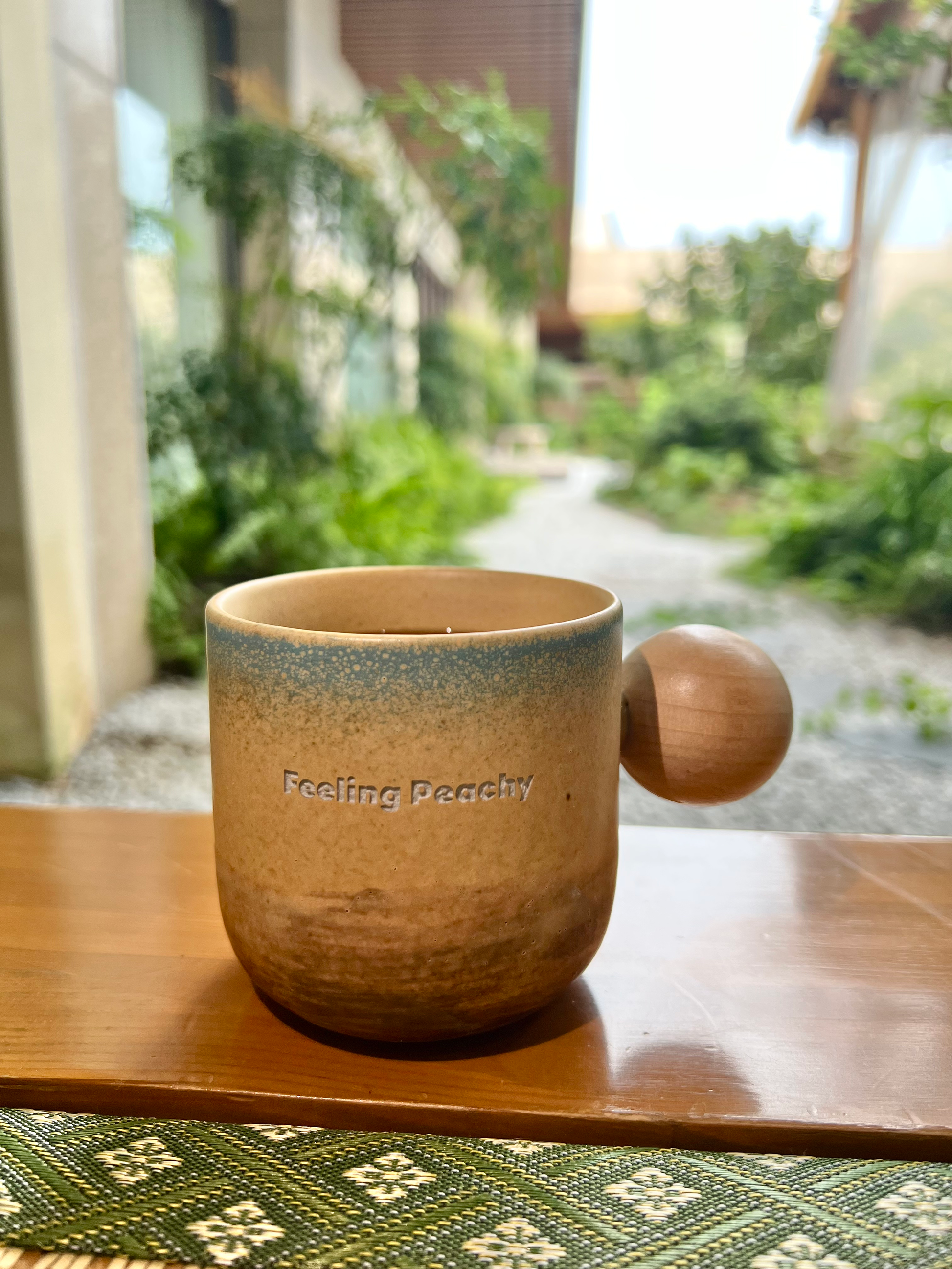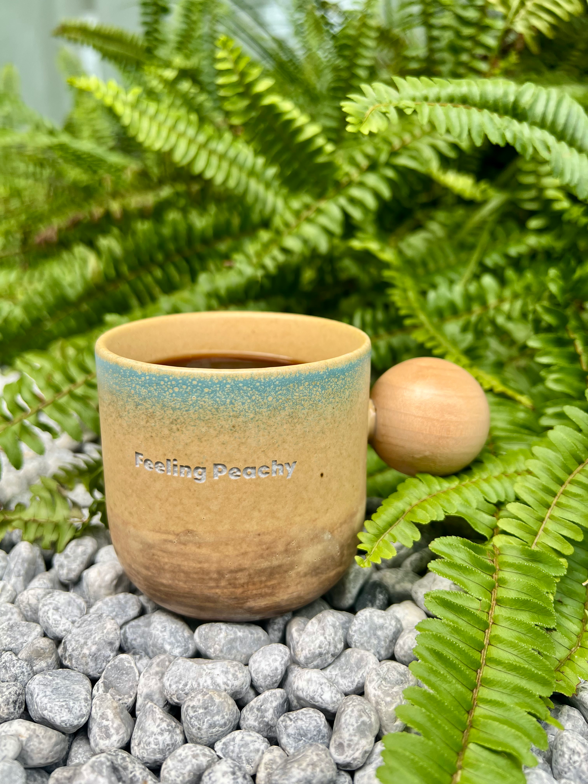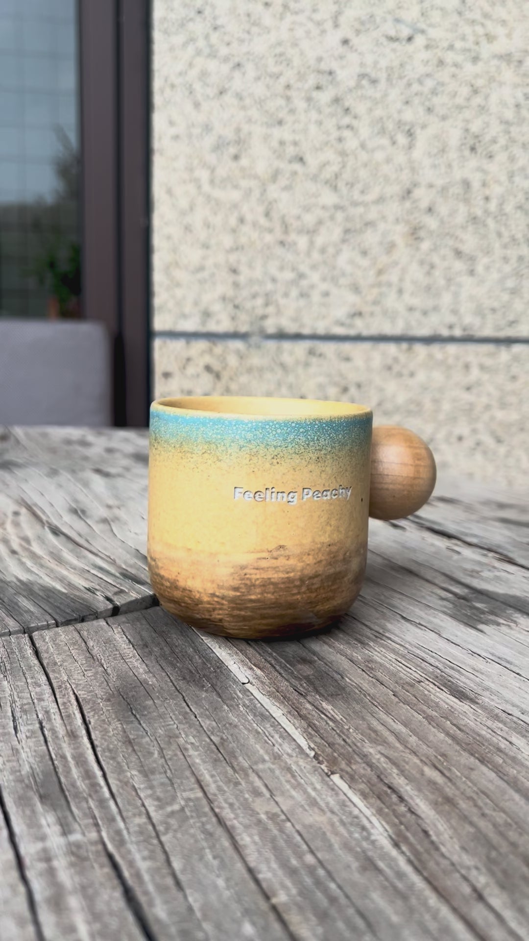 🎨 Color & Glaze 🎨 Inspired by a tranquil, natural palette, this cup features a stunning two-tone glaze. The bottom half is a warm, earthy tone with a rich, sandy texture, reminiscent of sun-baked clay. The top half contrasts beautifully with a speckled sky blue, creating a serene horizon line. Together, the colors evoke a peaceful, organic feel.
