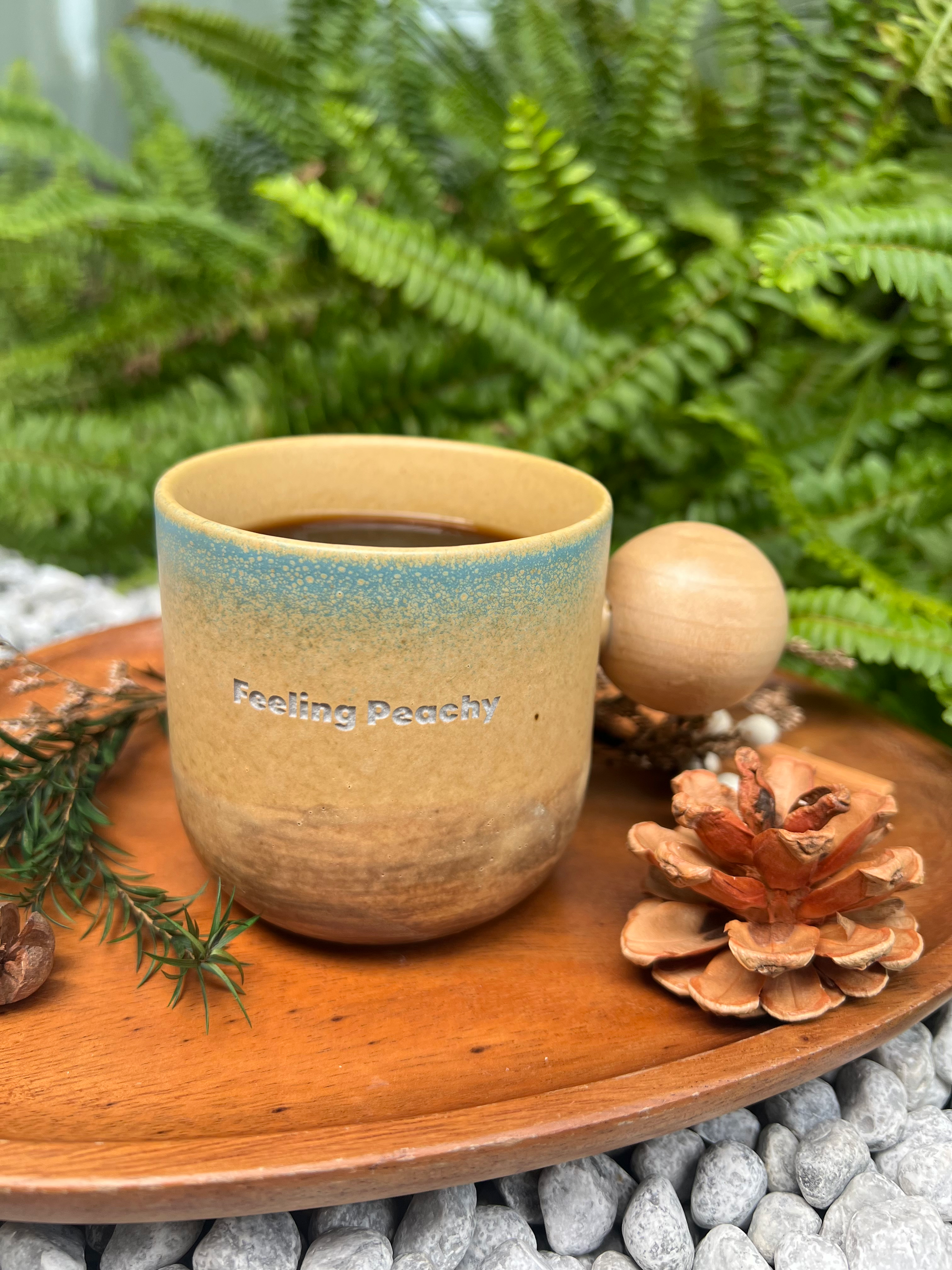 ✨ Artistry & Craftsmanship Details ✨ This isn't just a cup; it's a piece of functional art. Its handleless design gives it a comfortable, organic feel that fits perfectly in your hands. Made from durable stoneware clay, it is high-fired to create a sturdy and lasting piece. The two-tone glaze is applied by hand, flowing and blending to ensure each cup has a unique, one-of-a-kind pattern. The personalization with a custom word or phrase makes this a truly unique and meaningful gift.