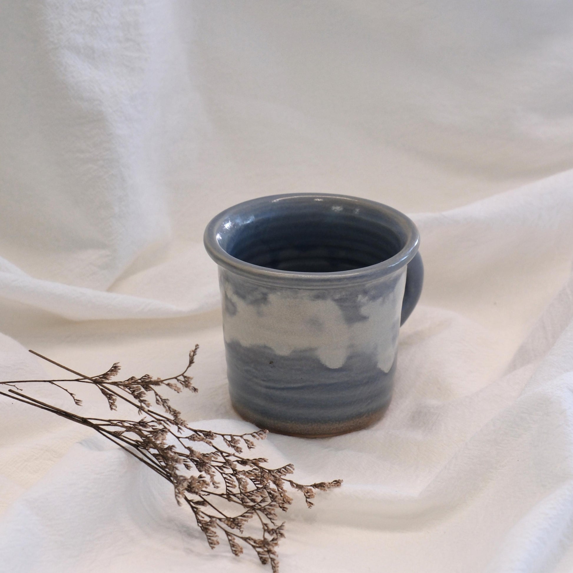 ♥The mug features a unique "Frostline" glaze design, characterized by a striking "Stone Base Blue" hue that evokes the depth of a winter sky or serene ocean. The glaze artistry creates a beautiful contrast, resembling a frosty line where the blue meets lighter, cloud-like tones, adding a rustic yet elegant touch. This glaze is not painted, ensuring the color will never fade away.