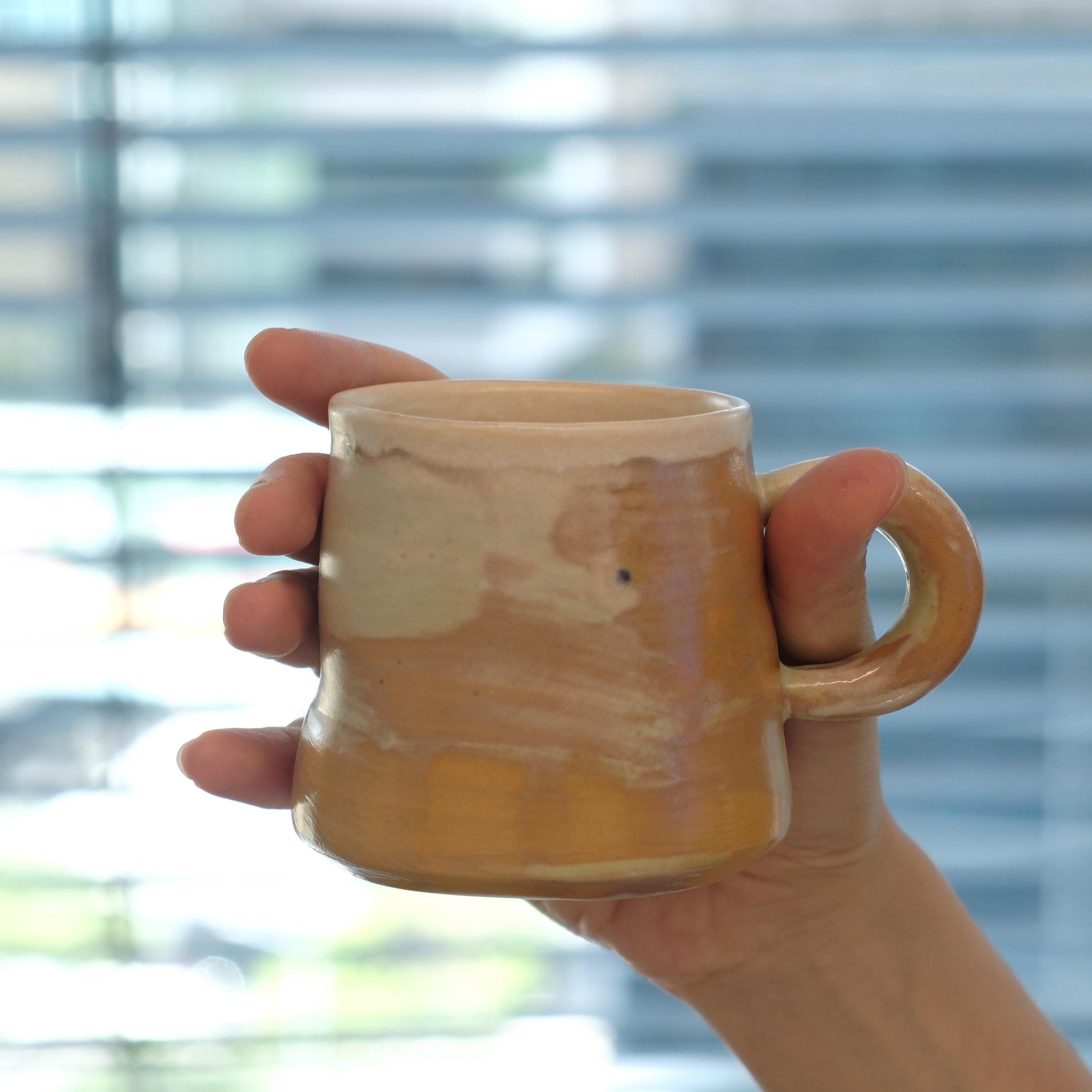 ♥The mug features a distinctive hand-thrown narrow lip and a rustic, earthy aesthetic. It showcases a beautiful terracotta-themed glaze, characterized by warm, natural tones that evoke the timeless beauty of earthenware. This glaze is not painted, ensuring the color will never fade away.