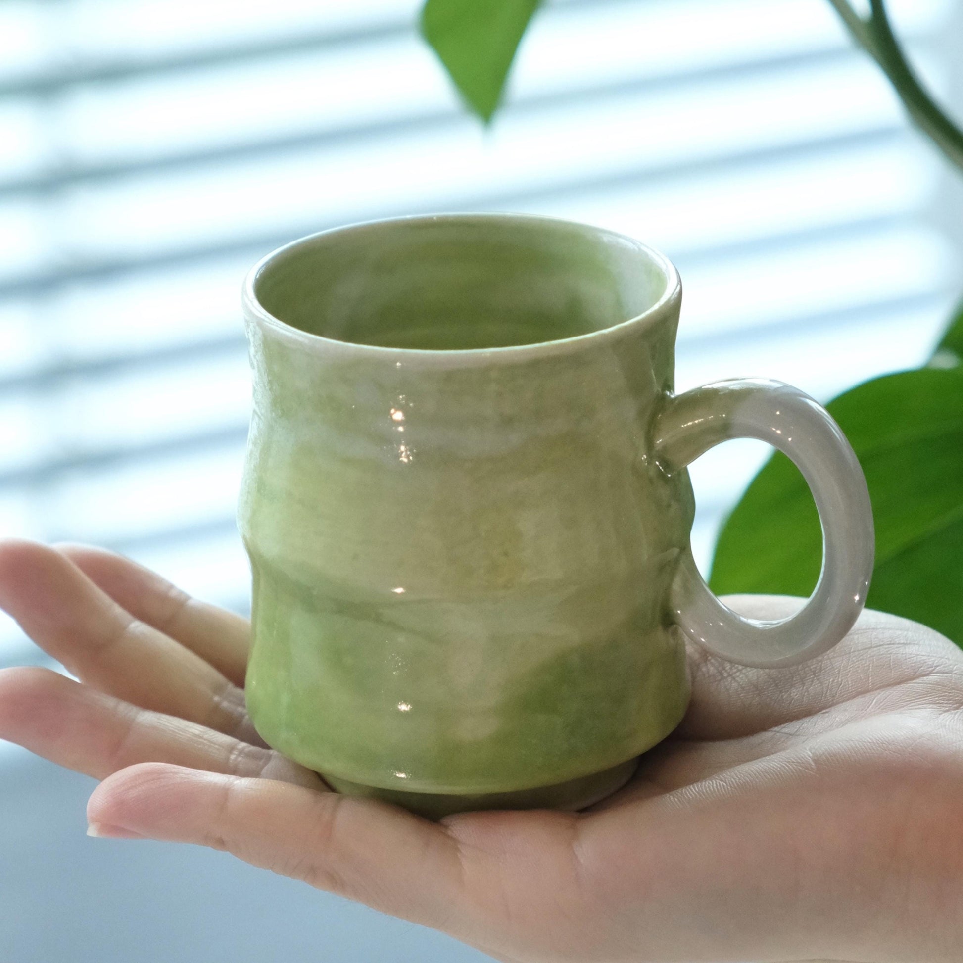 ♥This listing is for ONE Bamboo Joint Tea Set · Celadon Green. The cup features a distinctive bamboo joint-inspired texture and a comfortable handle, designed to fit perfectly in your hands. It has a volume of approximately 4.7 fl oz (140mL) and weighs about 5.3 oz (150g).