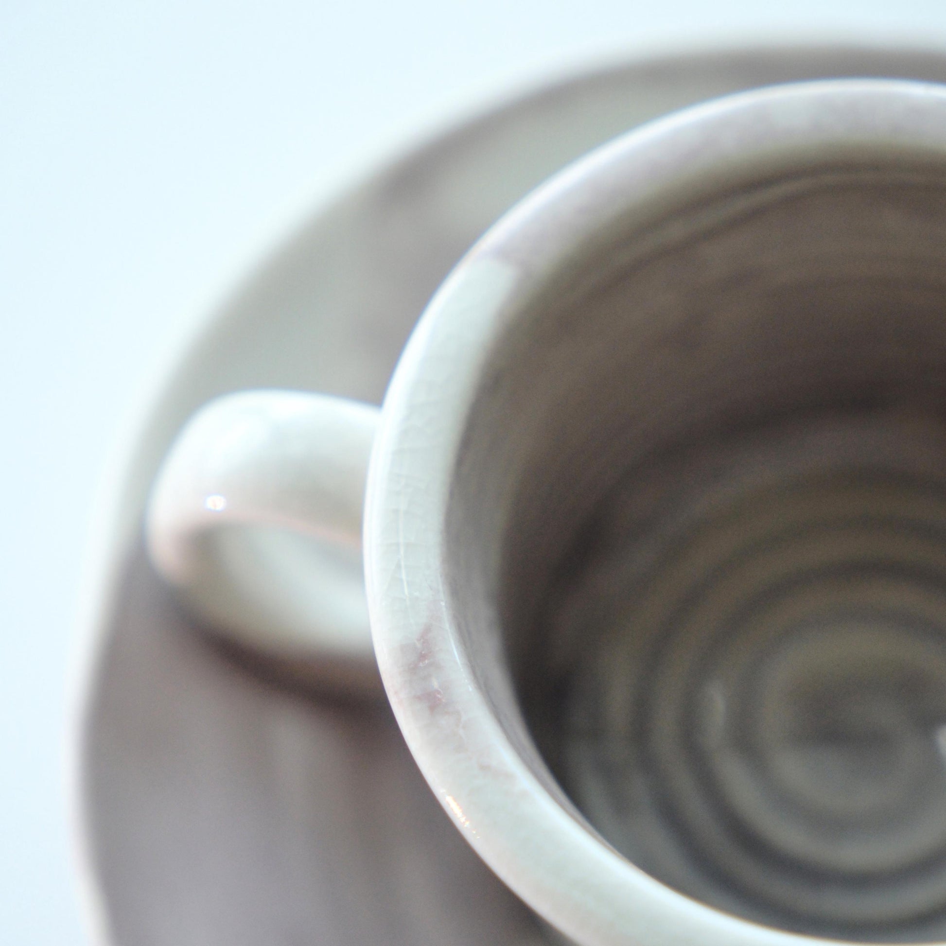♥This listing is for ONE Impressionist Mug & Saucer · Terra Blush set. The mug has a comfortable, slightly rustic form and a sturdy handle, designed to fit perfectly in your hands.